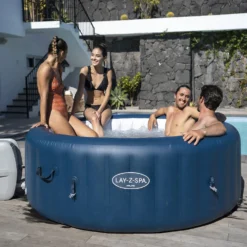 Adjustable LED lighting and a warm, marble slate design set the tone for long hours of relaxation, rejuvenation, and reflection in the CleverSpa Sorrento inflatable hot tub.
