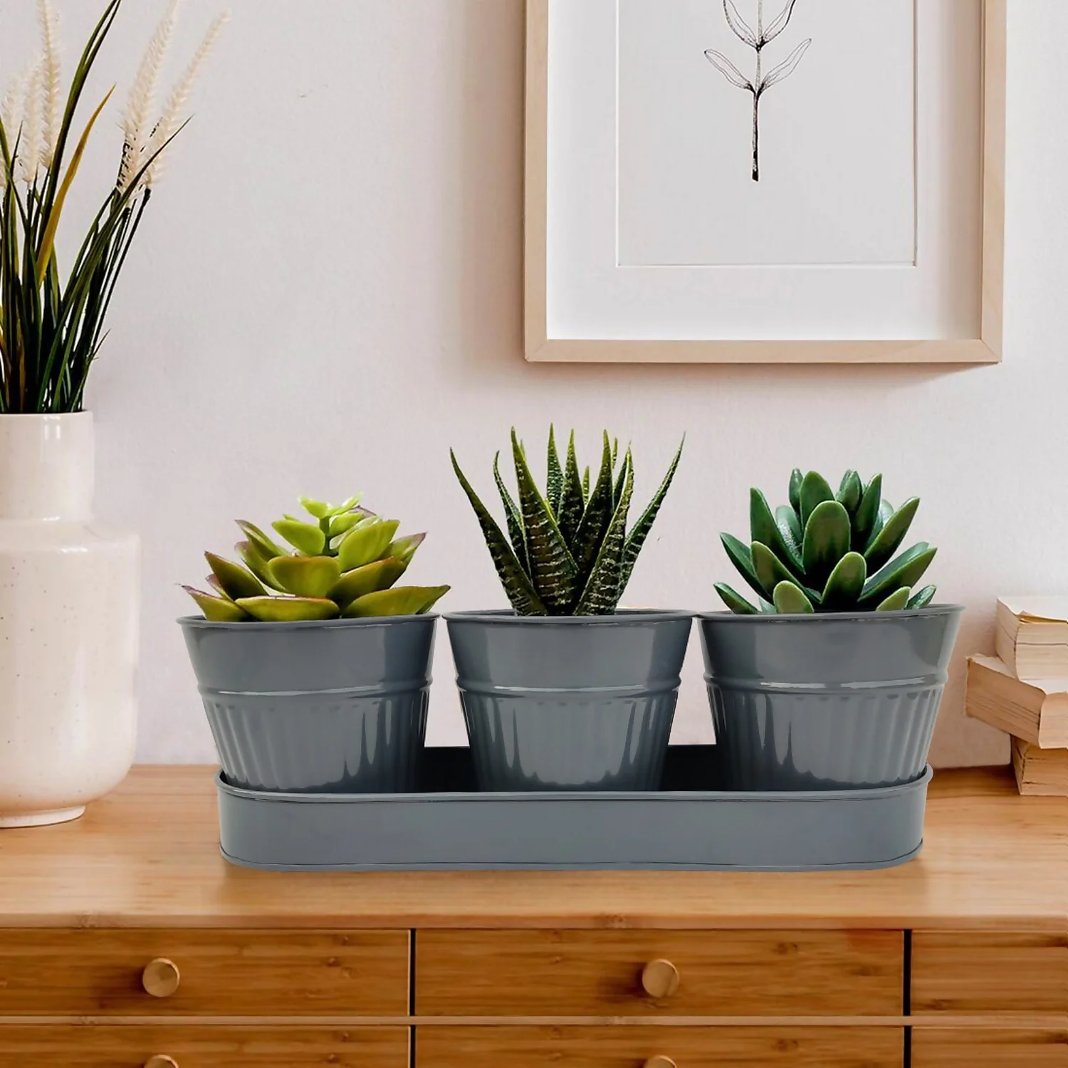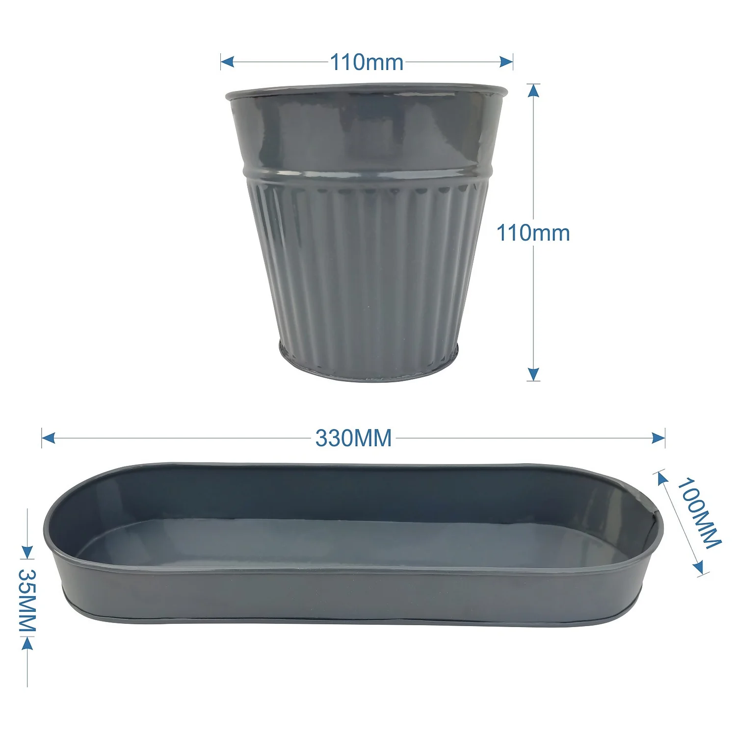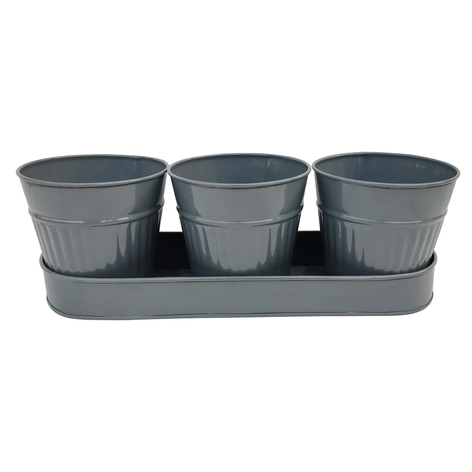 Ribbed Pots with Tray is perfect for small plants, flowers or for arts & crafts. Made from weather proof & powder coated steel.